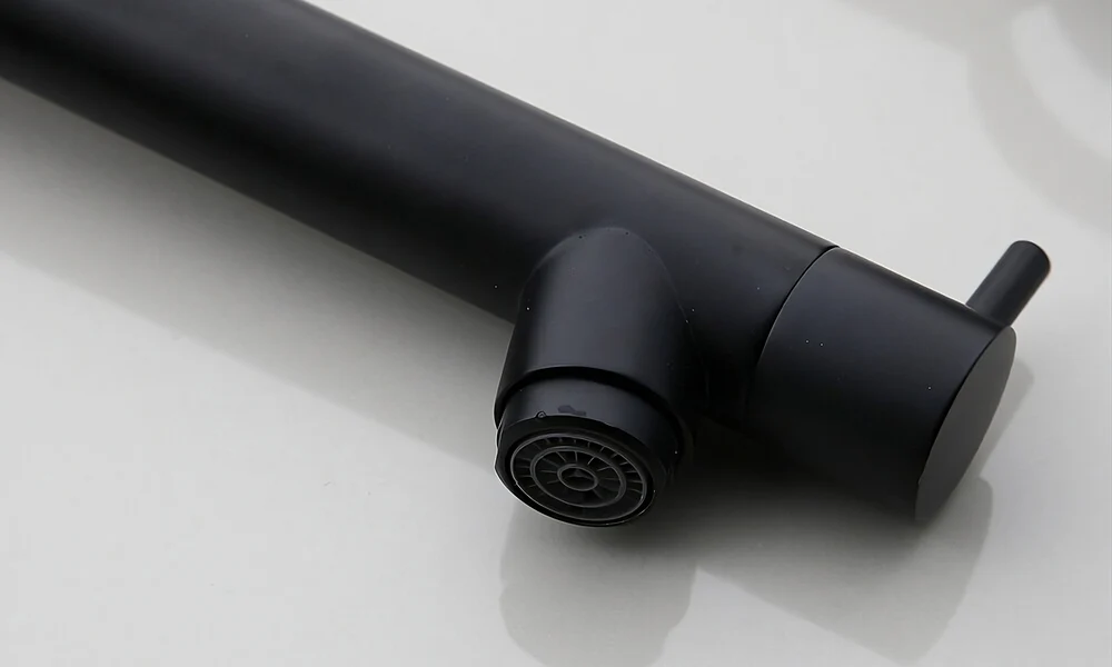 The combination of industrial aesthetics and an eye-catching finish makes this high-arc faucet a striking focal point in your kitchen.